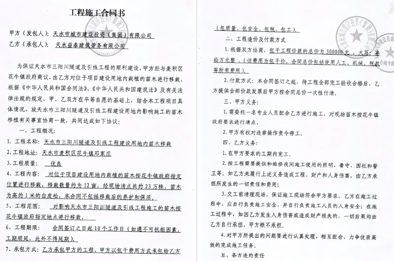 图为移栽苗木的《工程施工合同》