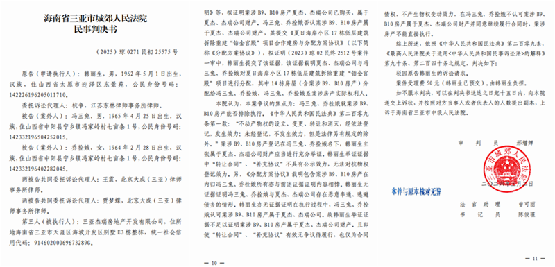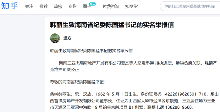 海南三亚数千万元债权遭悬空?韩丽生实名举报夏杰等人恶意逃债