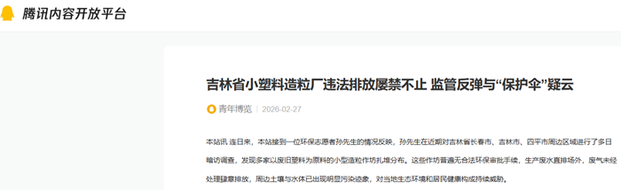 生态环境是关系民生的重大公共利益,塑料污染治理更是国家重点推进的生态环保工作。近年来,吉林省生态环境部门虽提出建立“一案一档一专班”机制,采取“资料调阅 现场踏勘 数据比对”等方式严防“纸面整改”“虚假销号” ,但吉林省塑料造粒作坊的违法反弹现状,显然与“长效监管”的要求存在差距。